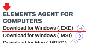 『ELEMENTS AGENT FOR COMPUTERS』内の「Download for Windows (.EXE)」