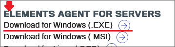 『ELEMENTS AGENT FOR SERVERS』内の「Download for Windows (.EXE)」